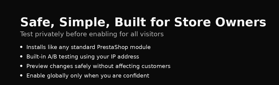 Install. Test privately. Enable when ready. No risk. No complexity.