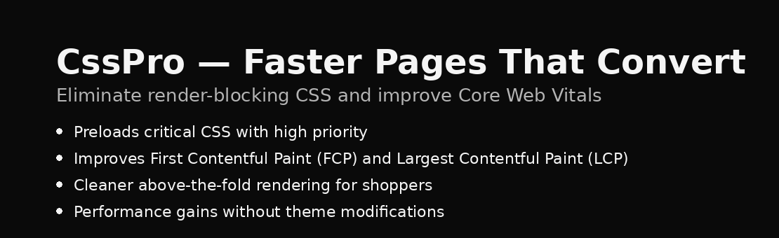 If your store feels slow — even on good hosting — CssPro often delivers immediate, noticeable improvement in how fast pages appear to shoppers.